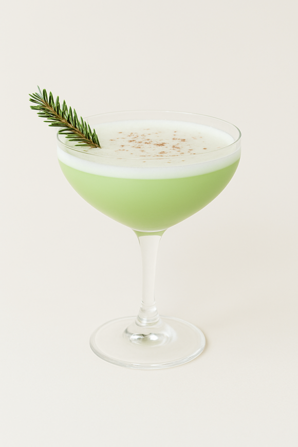 Häll i alla ingredienserna i en shaker och skaka utan is (torrskaka). Lägg sedan i is och skaka igen. Finsila (genom en tesil) upp i ett glas och riv lite muskot på toppen. Garnera med en grankvist.