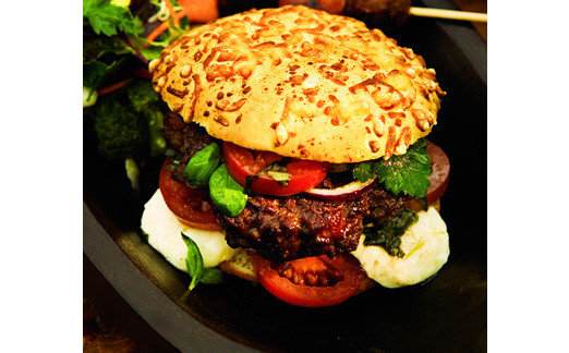 Fyll hamburger- eller pitabröden med caprese och baconburgare.