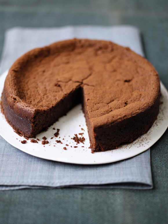 Häll försiktigt smeten i formen, jämna till den och sätt in i ugnen i 30 minuter tills det rest sig och bildats en lätt skorpa ovanpå. Ta ur kakan ur ugnen och lägg på ett ugnsgaller tills den svalnat till rumstemperatur. Kakan kommer att sjunka och skorpan kan spricka när den svalnat, men detta är en del av dess charm.