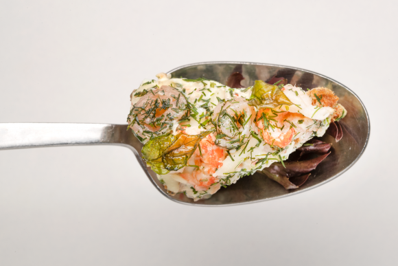 - 200 g grovhackad kokt, gravad eller rökt lax (spara några snygga bitar till garnering)