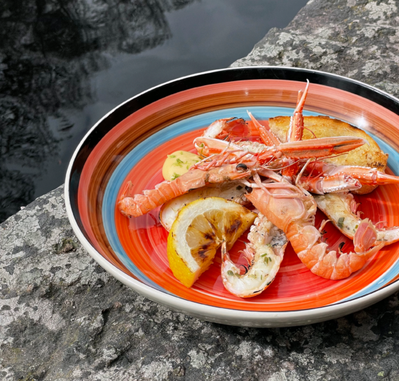 Dela havskräftorna på längden och pensla dem med det smälta smöret. Grilla sedan kräftorna med köttet nedåt i cirka 2 minuter. Vänd och grilla dem också cirka 2 minuter med skalet nedåt. Pensla sedan köttet ännu en gång med smöret. Servera direkt med aioli och en bit bröd.