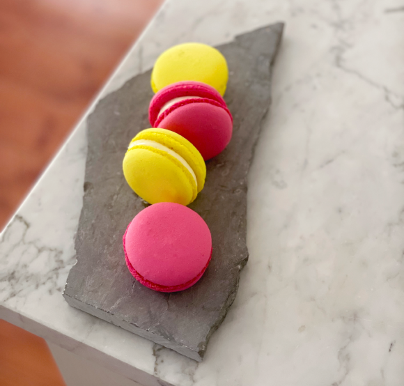 Sätt ugnen på 150 grader. Sikta mandelmjöl och florsocker för att få bort alla klumpar. Börja vispa äggvitorna på låg hastighet tills det börjar bildas ett skum, tillsätt då lite socker i taget. Öka hastigheten och vispa tills du får ett fast skum som bildar toppar.