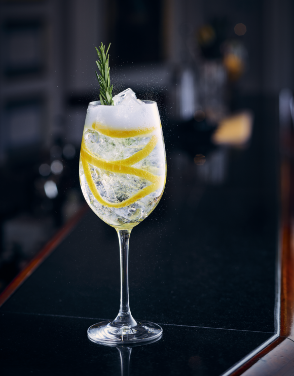 Blanda gin och sockerlag. Häll i ett stort vinglas med mycket is. Fyll upp med mousserande vin. Dekorera med rosmarin och citronzest.