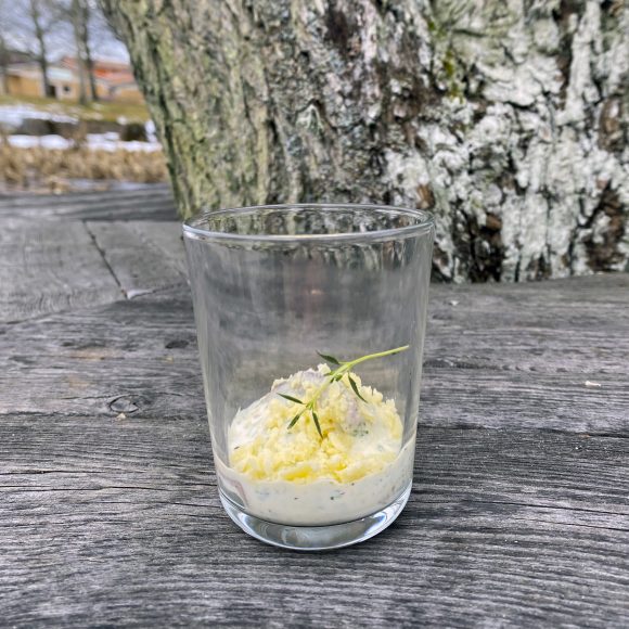 Häll av sillen och låt den rinna av. Blanda i hop alla ingredienser i en bunke. Tillsätt sillen. Täck bunken med plastfolie och låt stå ett dygn kylskåp.