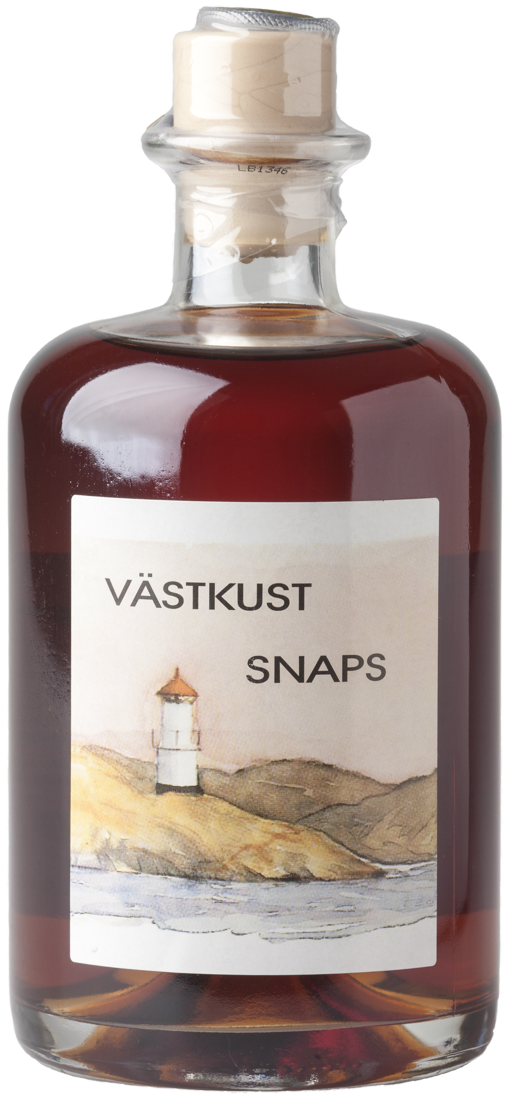 Denna snaps är framtagen av oss själva i Tidaholm. Vi har kryddat den med bl.a. torkade nypon, slånbär och björnbär – västkuskt så det förslår! Snapsen är tappad på en liten, rund, glasklar flaska med riktig kork som med lite fantasi faktiskt kan liknas vid en lysboj. Flaskan pryds dessutom av en etikett som tillverkats av västkustkonstnären Kaya Hansson.