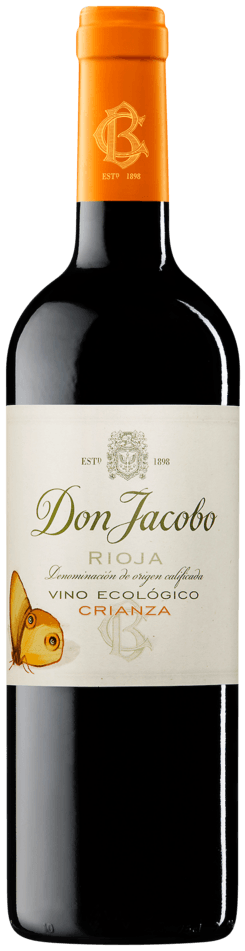 Detta ekologiska Riojavin, som dessutom är veganvänligt, kommer från Bodegas Corral i Rioja Alta. En modern Crianza, med koncentrerad frukt från begränsad avkastning och återhållsam fatlagring, låter tonerna av sommarfrukter blomma ut. Vinerna som produceras under namnet Don Jacobo har alla en modern, fruktig stil. Erkännanden och vinster: Guía Peñín 88 poäng, The Organic Masters-guld 2020, Concurso Internacional de Vinos Ecológicos-