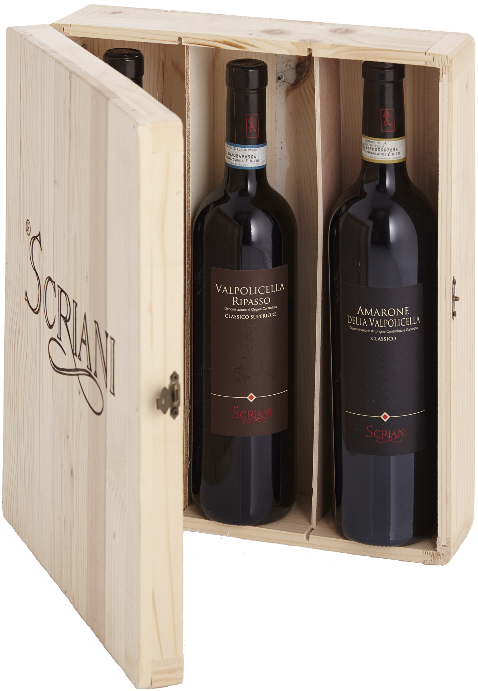 Scriani Wooden Case 3 flaskor. Superiore, Ripasso och Amarone |