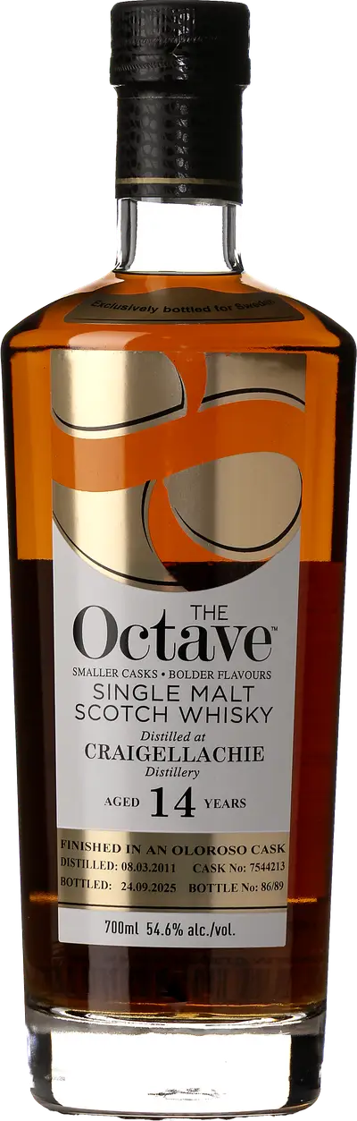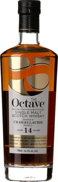 Byn Craigallachie, nästan rakt söderut från Elgin, ligger vid folden Spey. Själva destilleriet hittar du uppe på klippan Craigallachie Rock, där det blickar ut över byn. Det uppfördes 1891 av Alexander Edward, byggdes om 1896 och utökades 1965. Sedan länge har whiskyn varit grundstenen i blenden White Horse. Vattnet hämtas från källor i Cornval Hills, nära destilleriet. Den här whiskyn har tappats av independent bottler Duncan Taylor, som en del av deras omtalade ”Octave Range”, där whiskyn lagras en andra gång på små ”Octave casks”. I dryga 40 år har Duncan Taylor har Duncan Taylor experimenterat med att lagra whisky i små fat. Man har kommit fram till att det blir mer interaktion mellan fat och whisky på kortare tid i ett litet fat, än i ett stort under längre tid. När trä, luft och alkohol får samspela i ett litet utrymme resulterar det i en välbalanserad whisky med stor fräschör, balans och komplexitet. Duncan Taylor flyttar den inköpta whiskyn från originalfaten till sina egna, specialtillverkade oktavfat (från latinets octava = = åttonde/åttondel). De begagnade faten plockas isär i tunnbinderiet och binds sedan till nya fat som rymmer ungefär en åttondel av originalfatets storlek. De små faten har en stor andel ”Angels Share” (uppåt 10%, beroende på fatets kvalitet och hur länge whiskyn lagras).